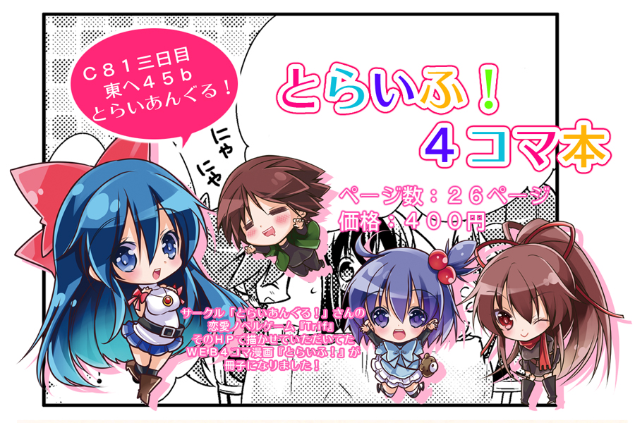 こちらの「とらいふ!4コマ本」、イベント限定頒布だそうですので、気になる方は是非ともお手に取っていただければ幸いです。